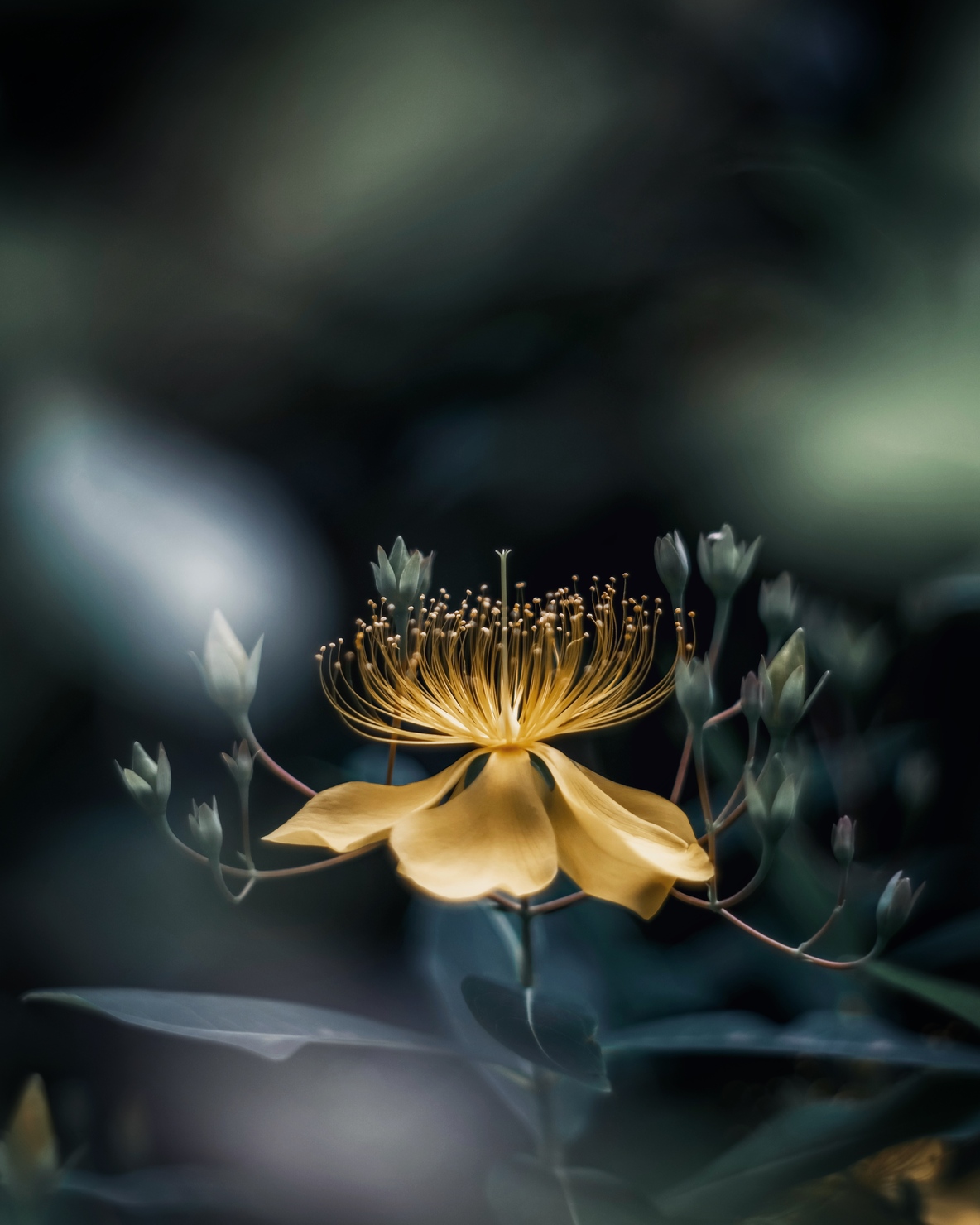 この自ら黄金色に光り輝くような様子が印象的な花はビヨウヤナギという花で、私にとって思い入れのある花です。普段から「クラシックネガ」の独特な色味とメリハリのある階調表現が好きで、一番よく使うフィルムシミュレーションなのですが、この花の魅力を最大限に引き出すのにも、「クラシックネガ」の彩度抑えめで深く落ち着きのあるグリーンの発色が好相性だと思い選びました。