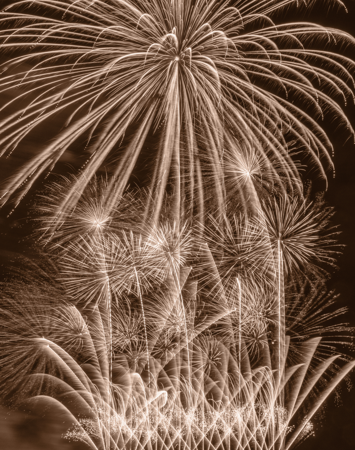 年間を通じ打上花火の撮影もしております。2年前から富士フイルムのカメラを使用し始め、フイルムシミュレーション+Rawの設定で作品創りを楽しんでいます。特に「セピア」に設定して撮った花火写真は時が経っても印象が変わらないため気に入っています。